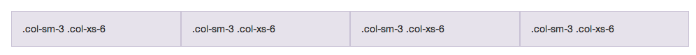 <div class="container"> <div class="row"> <div class="col-sm-3 col-xs-6">.col-sm-3 .col-xs-6</div> <div class="col-sm-3 col-xs-6">.col-sm-3 .col-xs-6</div> <div class="col-sm-3 col-xs-6">.col-sm-3 .col-xs-6</div> <div class="col-sm-3 col-xs-6">.col-sm-3 .col-xs-6</div> </div> </div>