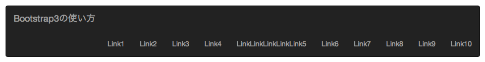 <!--ナビゲーションバーを使用するメニューですと設定--> <ul class="nav navbar-nav"> <li><a href="">Link1</a></li> ... </ul>